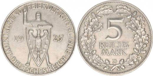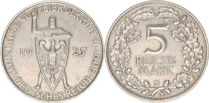 Výmarská republika (1918-1933), 5 RM 1925 D - Rhineland KM 47