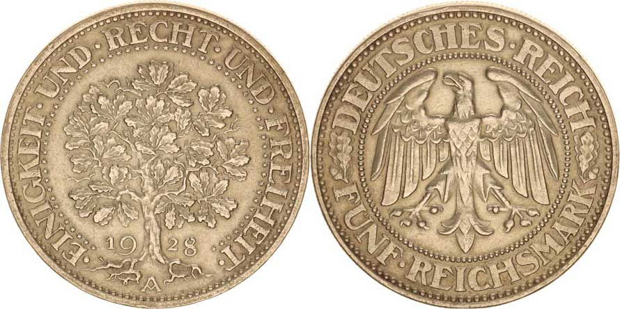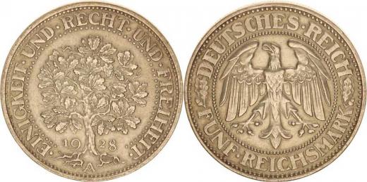 Výmarská republika (1918-1933), 5 RM 1928 A - dub KM 56