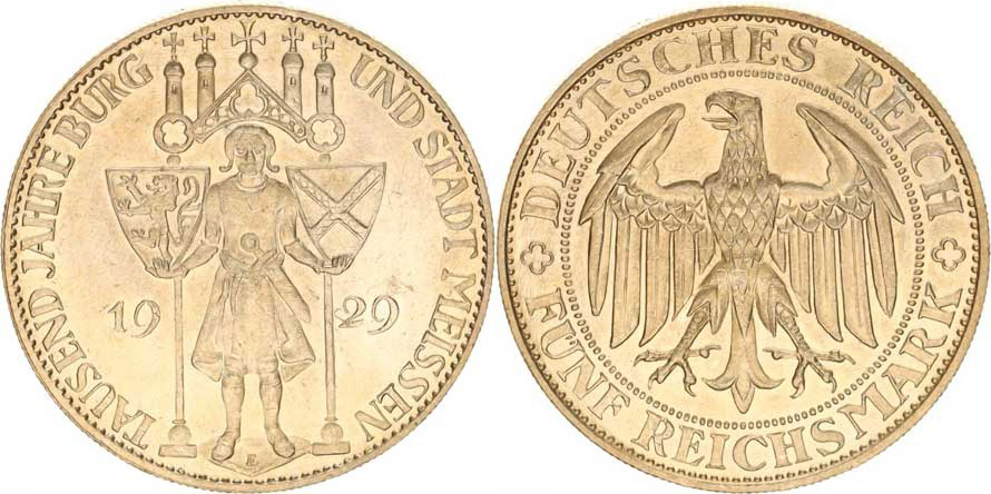 Výmarská republika (1918-1933), 5 RM 1929 E - Meissen KM 66 "R"