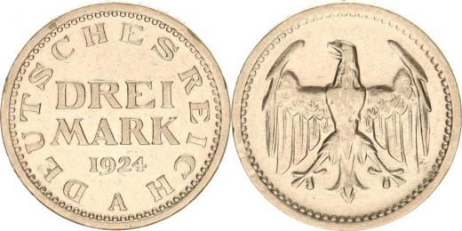 Výmarská republika (1918-1933), 3 Mark 1924 A KM 43