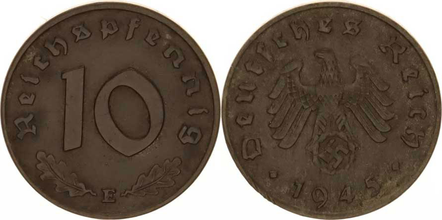 Německo - 3 říše, 1933-1945, 10 Rpf. 1945 E KM 101 "RR", mír. ox.