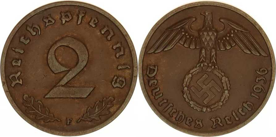 Německo - 3 říše, 1933-1945, 2 Rpf. 1936 F KM 90 "R"