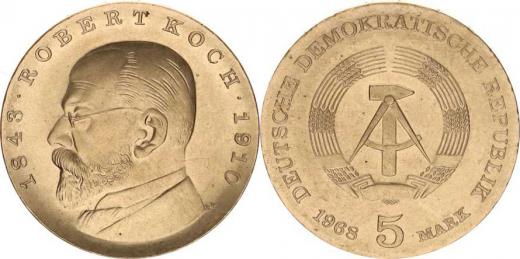 Německo - DDR (1949-1990), 5 M 1968 - Robert Koch KM 19,1 "R"