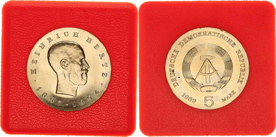 Německo - DDR (1949-1990), 5 M 1969 - Heinrich Hertz KM 23 +certifikát