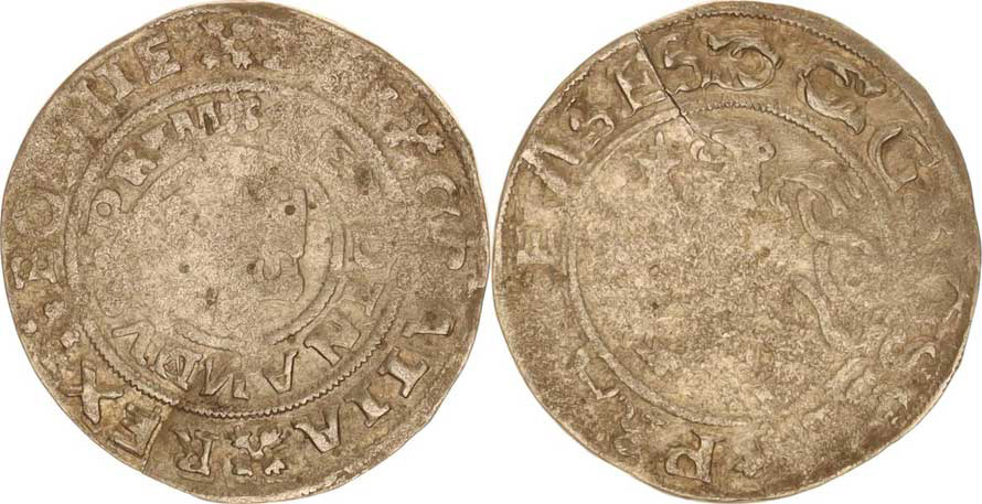 Pražský groš b.l., K.Hora Chvojka" typ GRATIA, obrácené N, cís.koruna, kroužek v ocase, nastř., nedor.