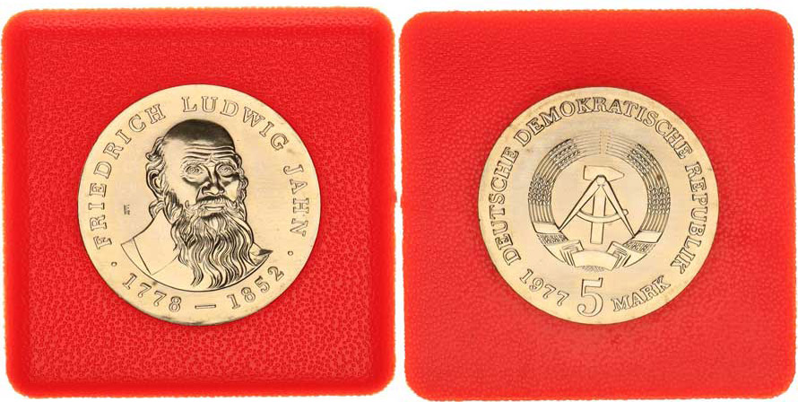 Německo - DDR (1949-1990), 5 M 1977 - Friedrich Ludwig Jahn KM 64 "R" +certifik