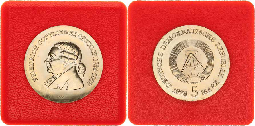 Německo - DDR (1949-1990), 5 M 1978 - Friedrich Gottlieb Klopstock KM 67 +certif