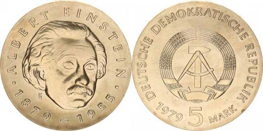 Německo - DDR (1949-1990), 5 M 1979 - Albert Einstein KM 72