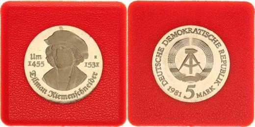 Německo - DDR (1949-1990), 5 M 1981 - Tilman Riemenschneider "R" KM 79 +certifikát