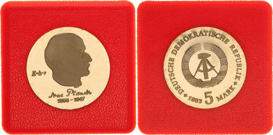 Německo - DDR (1949-1990), 5 M 1983 - Max Planck KM 91 "R" +certifikát