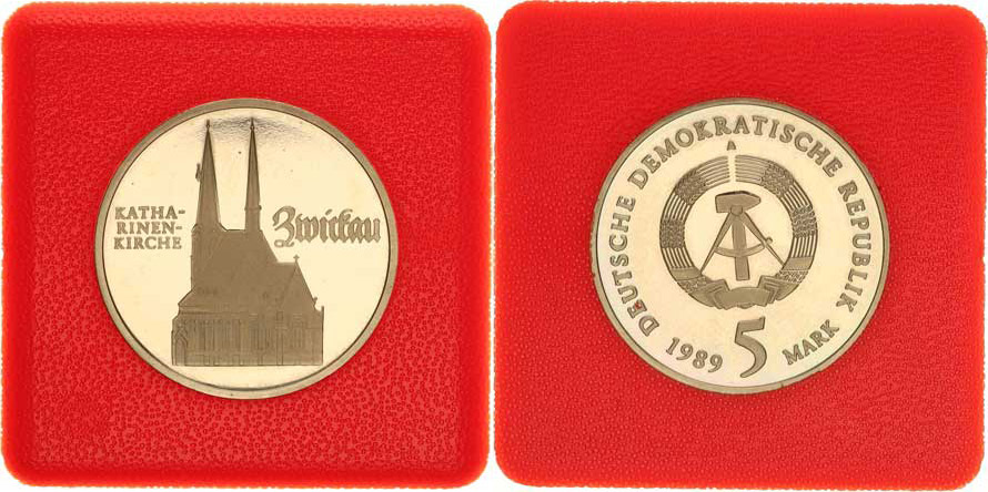 Německo - DDR (1949-1990), 5 M 1989 A - Zwickau, kostel sv.Kateřiny KM 129 +certifiká