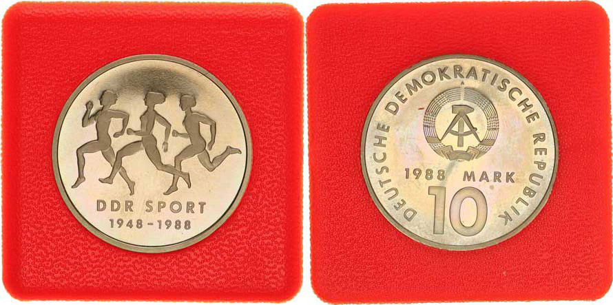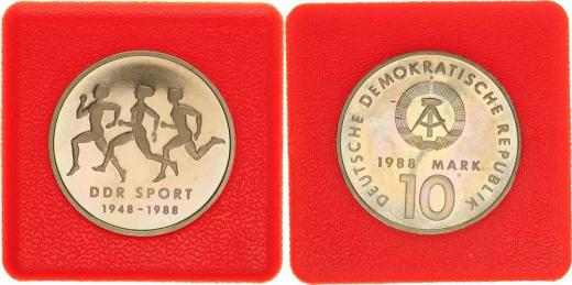 Německo - DDR (1949-1990), 10 M 1988 A - 40 let sportu KM 125 +certifikát
