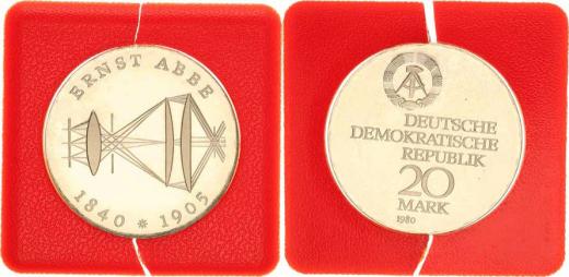 Německo - DDR (1949-1990), 20 M 1980 - Ernst Abbe KM 78 +certifikát