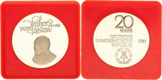 Německo - DDR (1949-1990), 20 M 1981 - Freiherr von Stein KM 83 +certifikát
