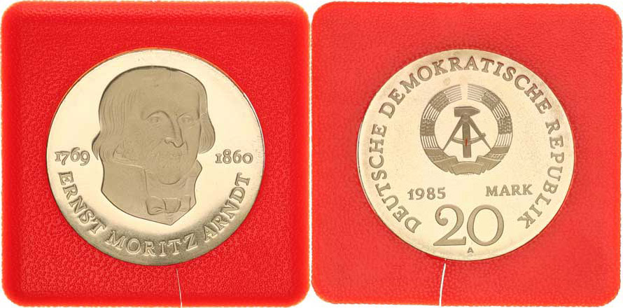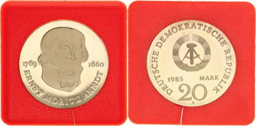 Německo - DDR (1949-1990), 20 M 1986 A - Jacob Wilhelm Grimm KM 108 "RRR" +cert