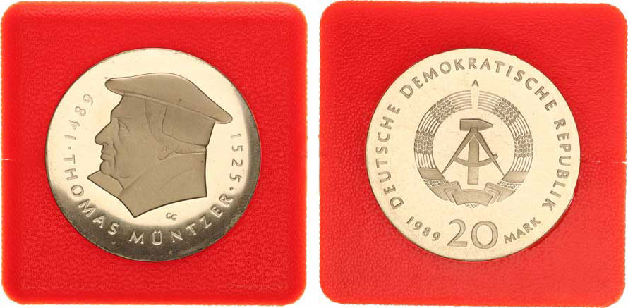 Německo - DDR (1949-1990), 20 M 1989 A - Thomas Müntzer KM 127 "R" +certifikát