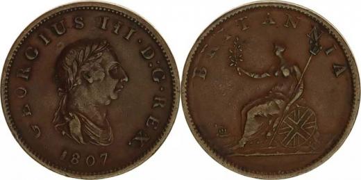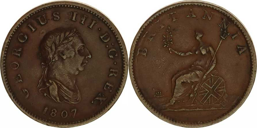 Anglie, George III. (1760-1820), 1 Penny 1807 "R" KM 663, tém.