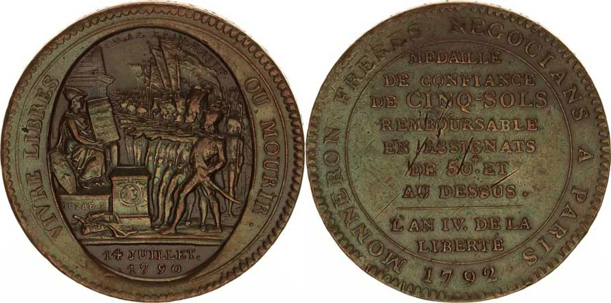 Francie, revoluce (1789-1796), 5 Sol, Monnéron 1792, přísaha vojáků / text a hodnota