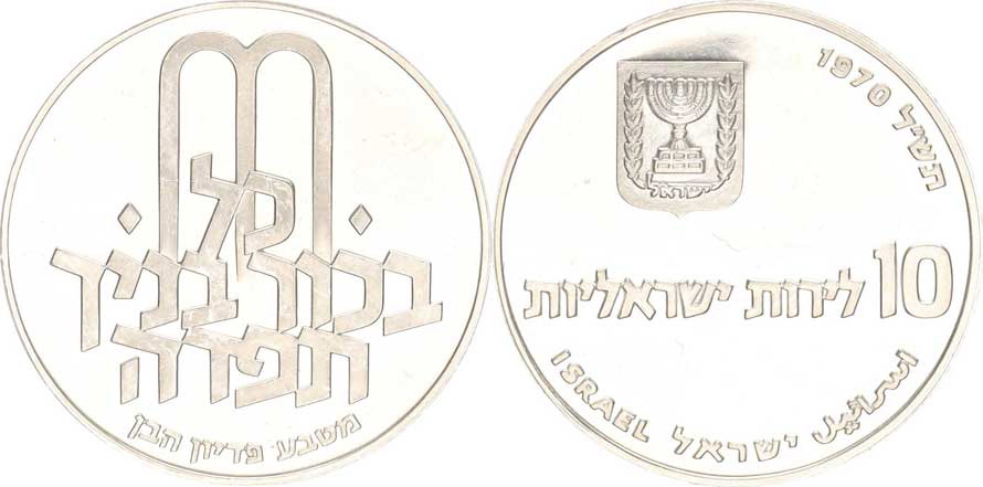 Israel, 10 Lirot 5730 /1970 AD/ - Pidyon Haben KM 56,1 var. hladká
