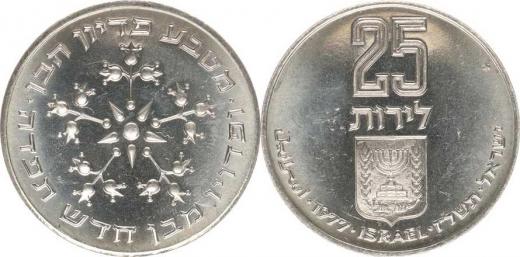 Israel, 25 Lirot 5737 /1977 AD/ - Pidyon Haben KM 89.1 zn. hvězička,
