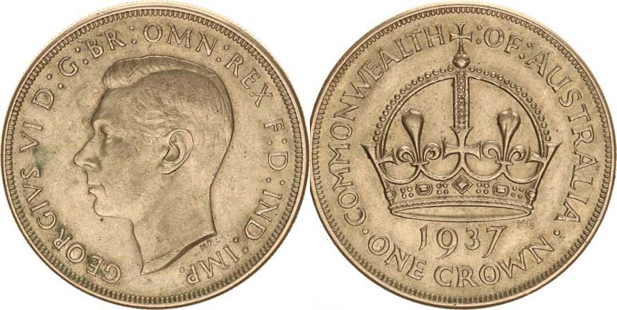Austrálie, George VI. (1936-1952), 1 Crown 1937 KM 34 Ag 925 28,28 g
