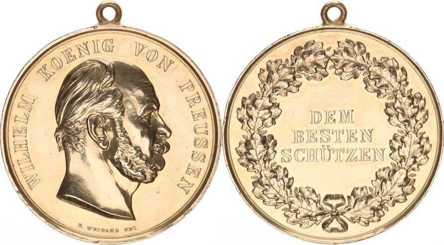 Německo - Prusko, Wilhelm - Střelecká medaile b.l., hlava císaře vpravo / v dubovém