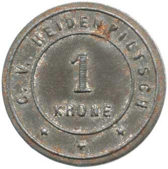 Heidenpiltsch (Bílčice okr.Bruntál), 1 KRONE C. V. Fe plech 27 mm