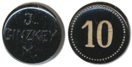 Maffersdorf (Vratislavice nad Nisou) - "10" / J. GINZKEY M. (tová rna na koberce) černé sklo s bílou číslici 19 mm