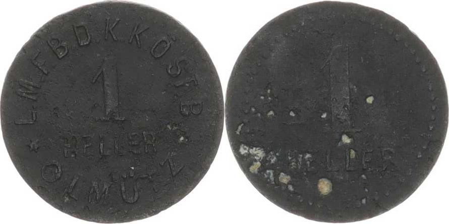 Olomouc - 1 HELLER * L.M.F.B.D.K.K.O.ST.B * OLMÜTZ / 1 HELLER b.l. Zn 18 mm, oxyd.