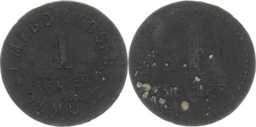 Československo - nouzovky, známky, Olomouc - 1 HELLER * L.M.F.B.D.K.K.O.ST.B * OLMÜTZ /