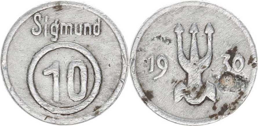Olomouc - Sigmund "10" / dataci 19-30 rozděluje fy. značka Zn 18,5 mm, dr. vada kovu