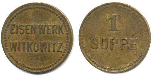 Československo - nouzovky, známky, Witkowitz(Ostrava), Eisenwerk / 1 Supe mosaz 20 mm