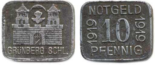 Polsko - nouzovky, Grünberg (Zielona Góra) - 10 Pfennig 1919 Fe 20x17 mm