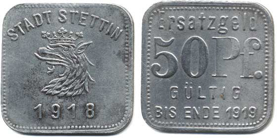Polsko - nouzovky, Stettin (Štětín) - 50 Pf. 1918 Fe23x23 mm