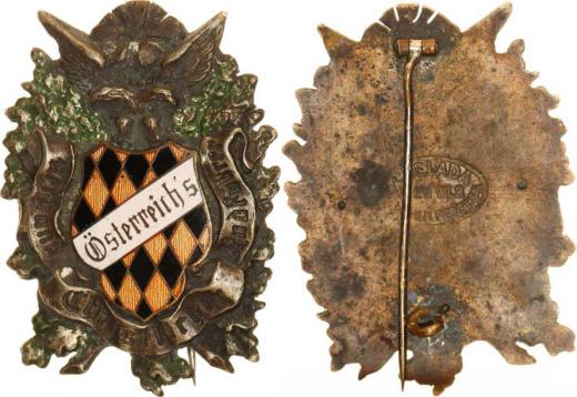 Rakouské sdružení křesťanských cyklistů, Ve štítu s oranž-černými kosočtverci bílý štítek s nápisem Österreich´s, ve stuze nápis: V ERBAND CHRISTLICHER RADFAHRER raž.: Belada Wien 37x52 mm zapín. spona