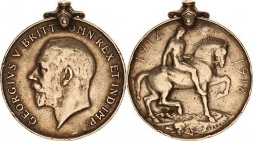 Anglie, George V. - Válečná medaile "1914-1918" Ag na hraně udělení:
