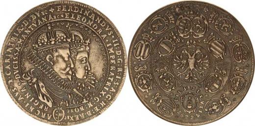 2 1/2 Tolar 1622 - svatební, Sv. Vít, dvojportrét zprava a dvojit ý opis /císařský znak, okolo znaky korunních zemí "sběratelsk á ražba" Ag patinované 925 48 mm 47,241 g (zn. TEISEL)