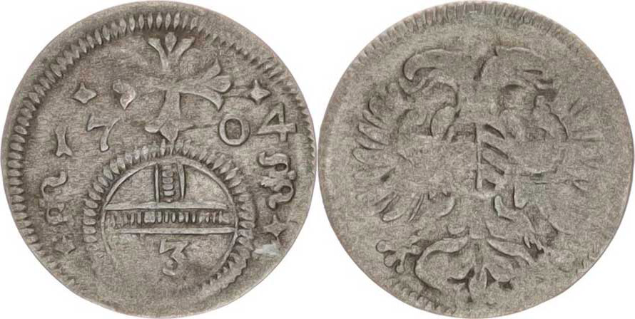 Leopold I. (1657-1705), Grešle 1704 b.zn., Opolí-Nowak, var.: kříž bez teček, tém.
