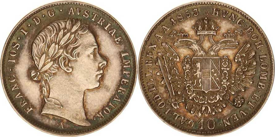 František Josef I.(1848-1918), 10 kr. 1853 A "pěkná patina"