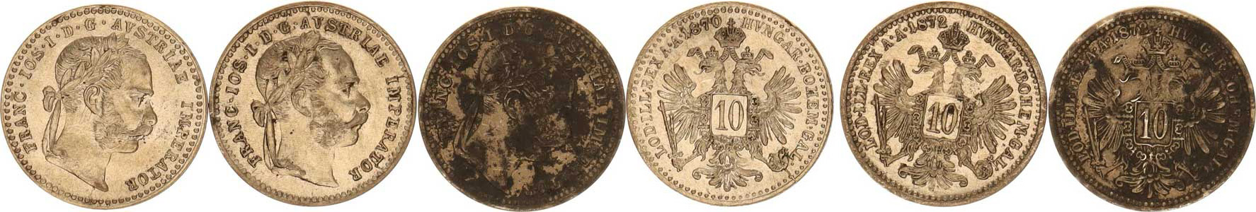 František Josef I.(1848-1918), 10 kr. 1870, 1872(2x) vše b.zn. 3 ks