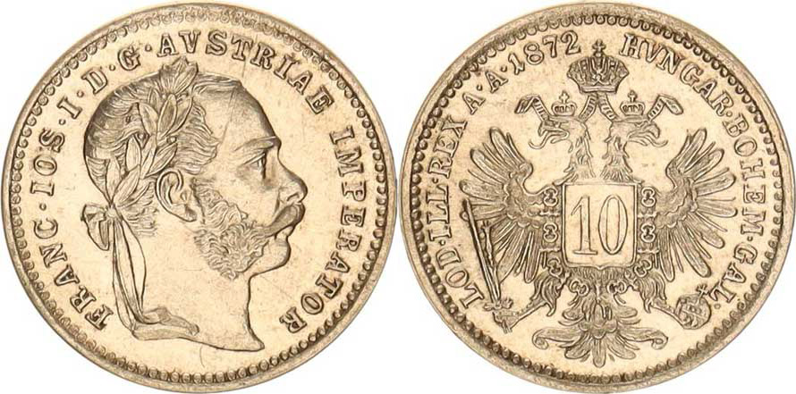 František Josef I.(1848-1918), 10 kr. 1872 b.zn.