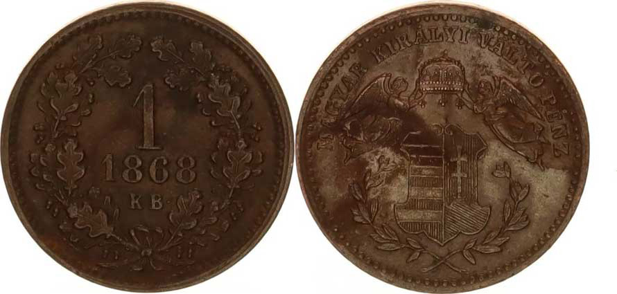 František Josef I.(1848-1918), 1 kr. 1868 KB, dr. oxyd. skvr. v rv.