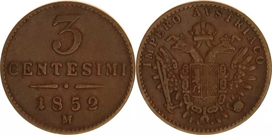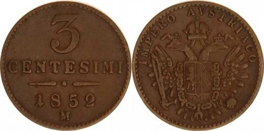 3 Centesimi 1852 M - IMPERO Nov. 92, tém.
