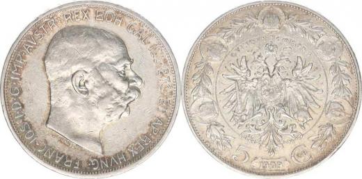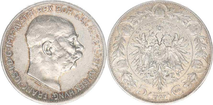 František Josef I.(1848-1918), 5 Koruna 1909 b.zn. - Schwartz, rys.