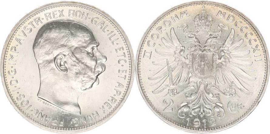 František Josef I.(1848-1918), 2 Koruna 1912 b.zn.