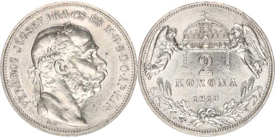 František Josef I.(1848-1918), 2 Koruna 1913 KB