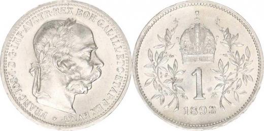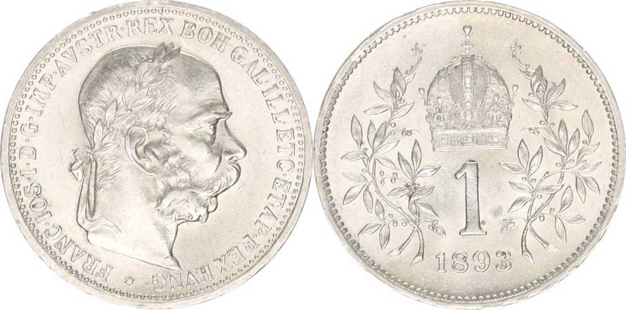 František Josef I.(1848-1918), 1 Koruna 1893 b.zn.
