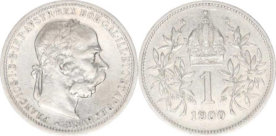 František Josef I.(1848-1918), 1 Koruna 1900 b.zn., dr. rys.