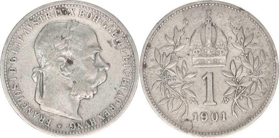 František Josef I.(1848-1918), 1 Koruna 1901 b.zn.