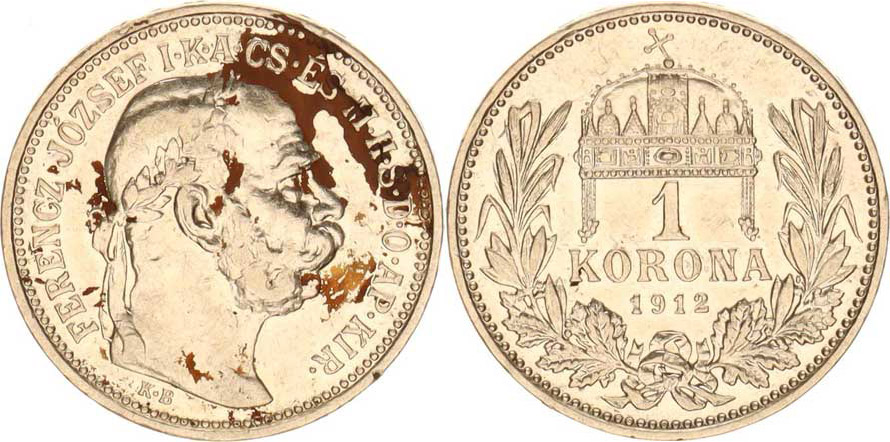 1 Koruna 1912 KB, v av. oxyd. skvr.
